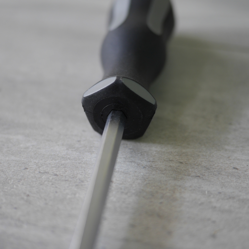 使用貫通螺絲起子時,為了讓起子可以更順利的把鏽蝕或是卡死的螺絲栓開,正確的使用方法為將貫通起子抵住螺絲之後用橡膠槌進行敲打而產生晃動,而Gorilla在這個部分,內部的柄身鐵刃為從起子頭直接連結到起子尾端鐵頭的單邊螺紋設計,除了可完全降低起子因為敲擊的內部損壞之外,更可減少起子在衝擊時產生的震動。