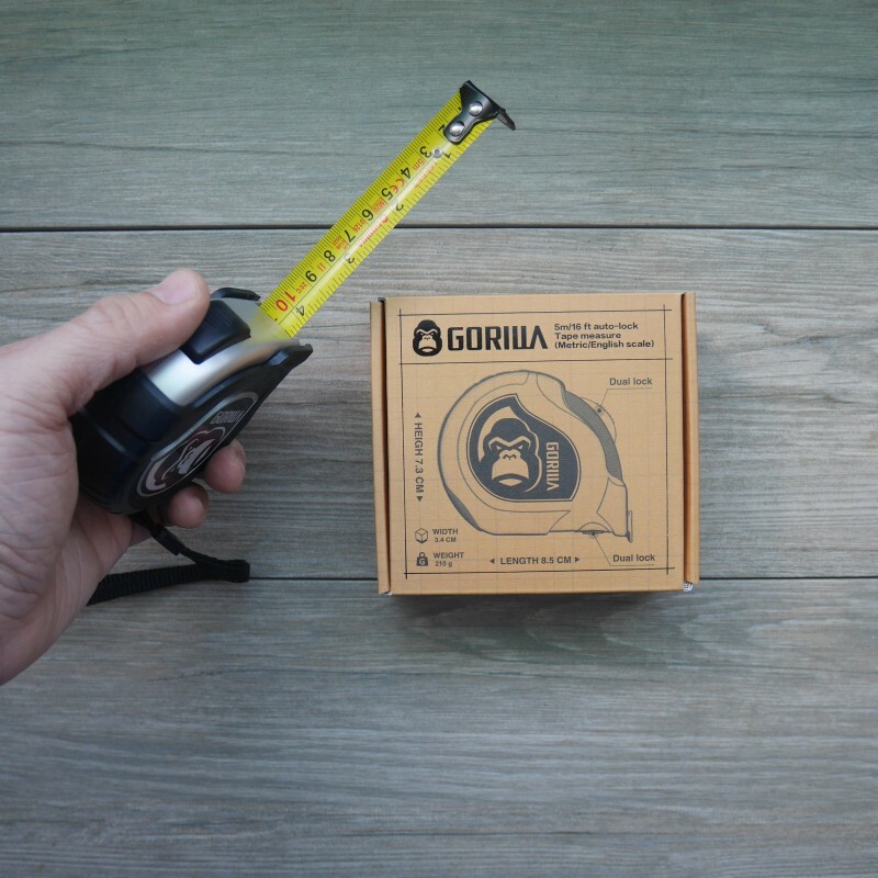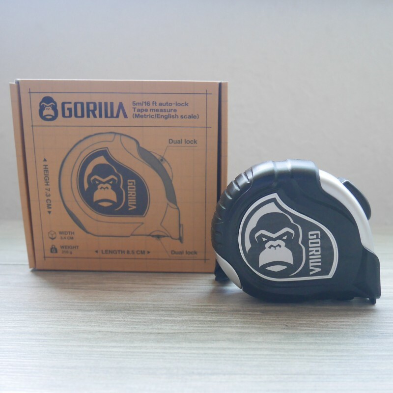 與廉價的捲尺採用工廠大批量生產的後具有些微精度不準的尺帶不同,Gorilla的捲尺每一顆都是工廠百分之百檢驗後的尺帶,保證精度符合歐盟的要求,加上Gorilla的特殊設計,讓每一條尺帶的挺立度及耐磨性更是提升到了最高,印上Gorilla標誌的尺帶就是品質的保證。