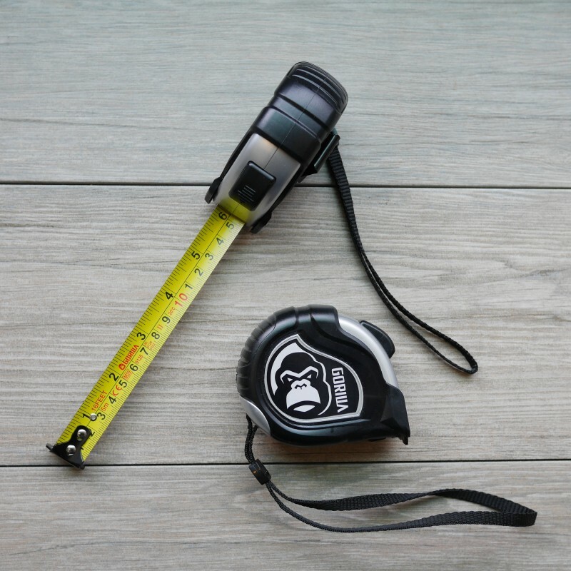 Gorilla的銀灰色公英制捲尺尺帶為全長為5m寬度19mm,並印有公制(公分)以及英制(英尺英吋)的公英制捲尺。擁有一個公英制的捲尺,在生活中常會帶來意想不到的方便。無論是在網購量測盤子的大小,或是買行李箱時。Gorilla公英制的捲尺,不僅讓您一眼知道是幾公分,還能感受到實際的長度。