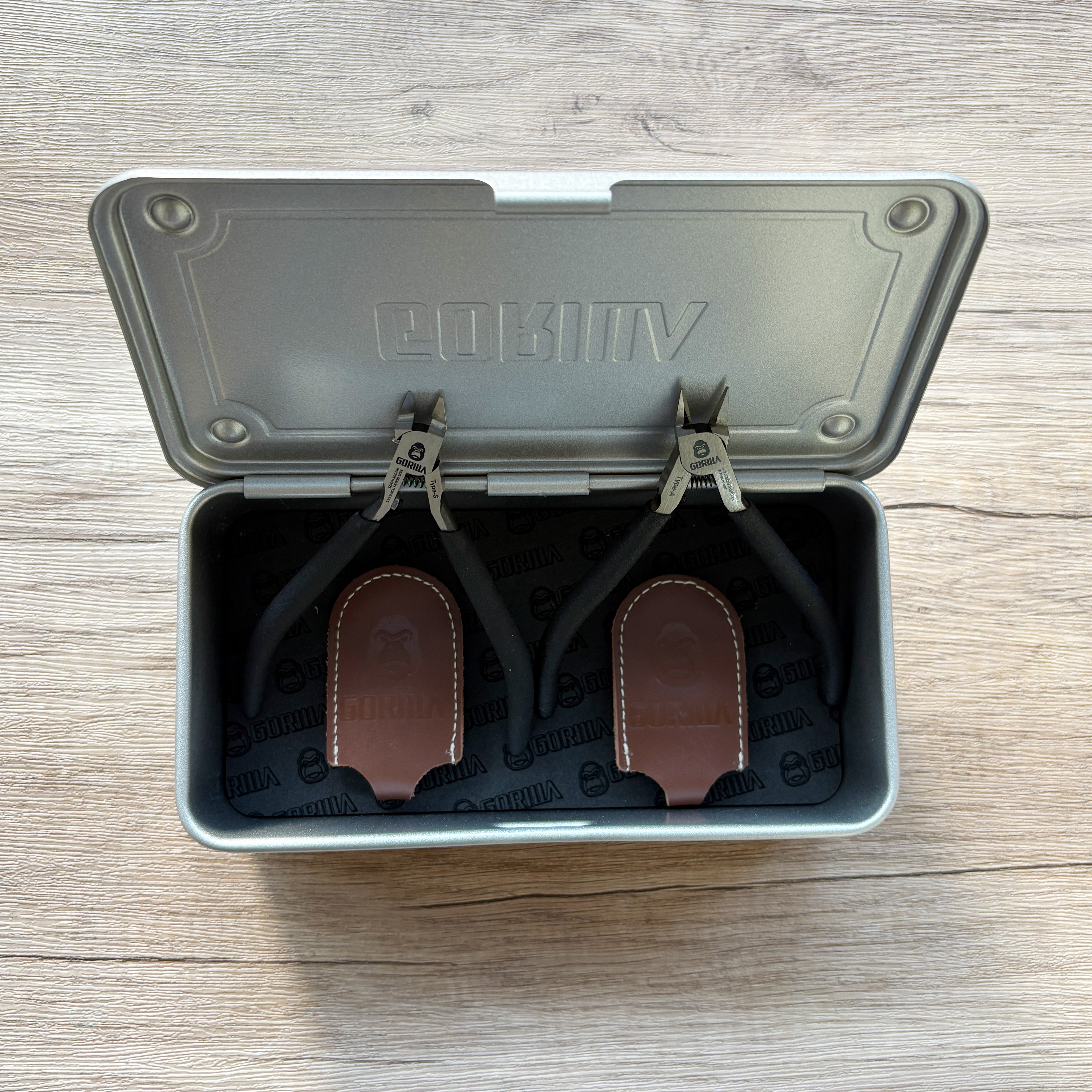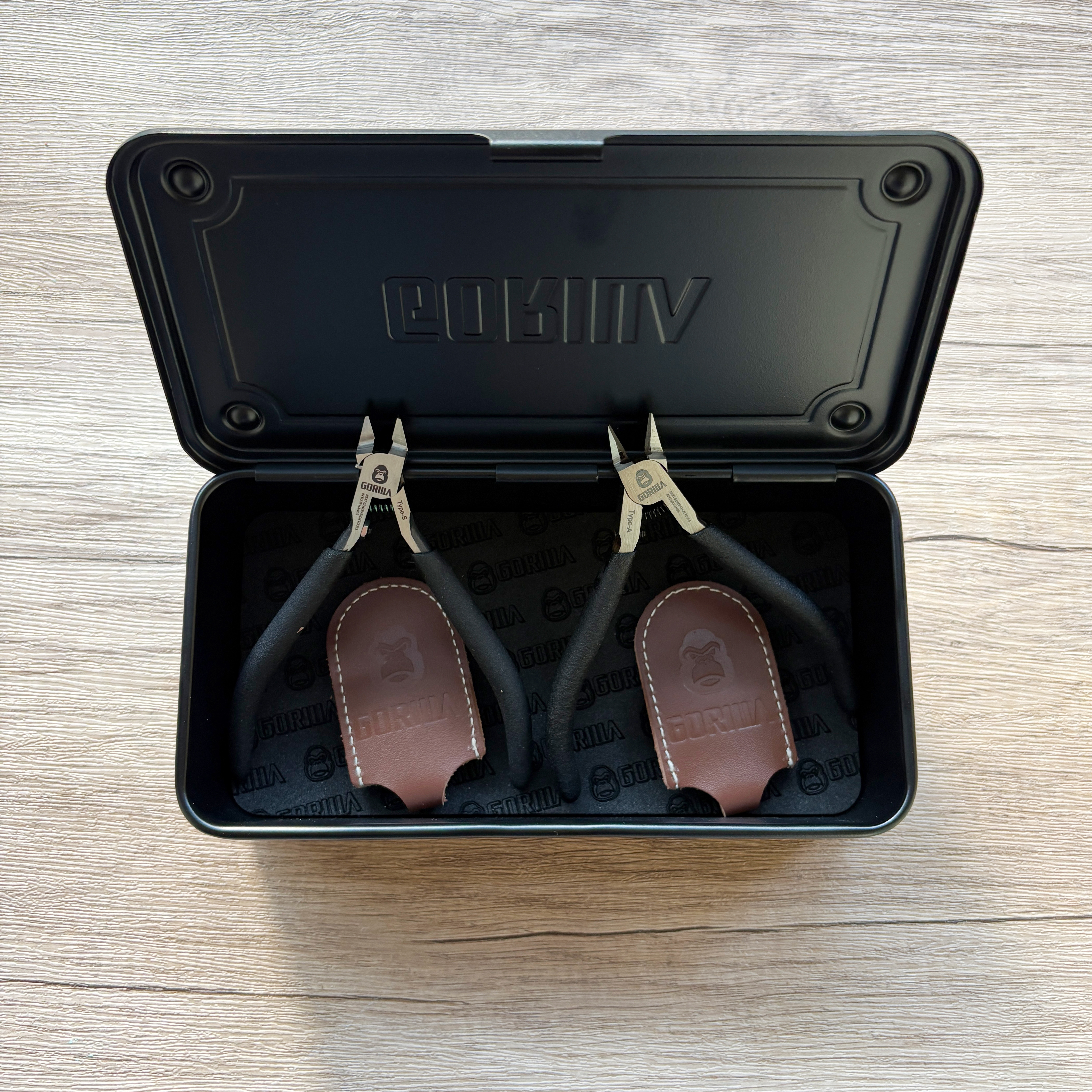 本組合內容物如下:【Gorilla】進化版精密超薄單刃模型鉗(Type-S) x1【Gorilla】精密超薄雙刃模型鉗(Type-A) x1【Gorilla】霧黑色高張力鋼工具箱 x1