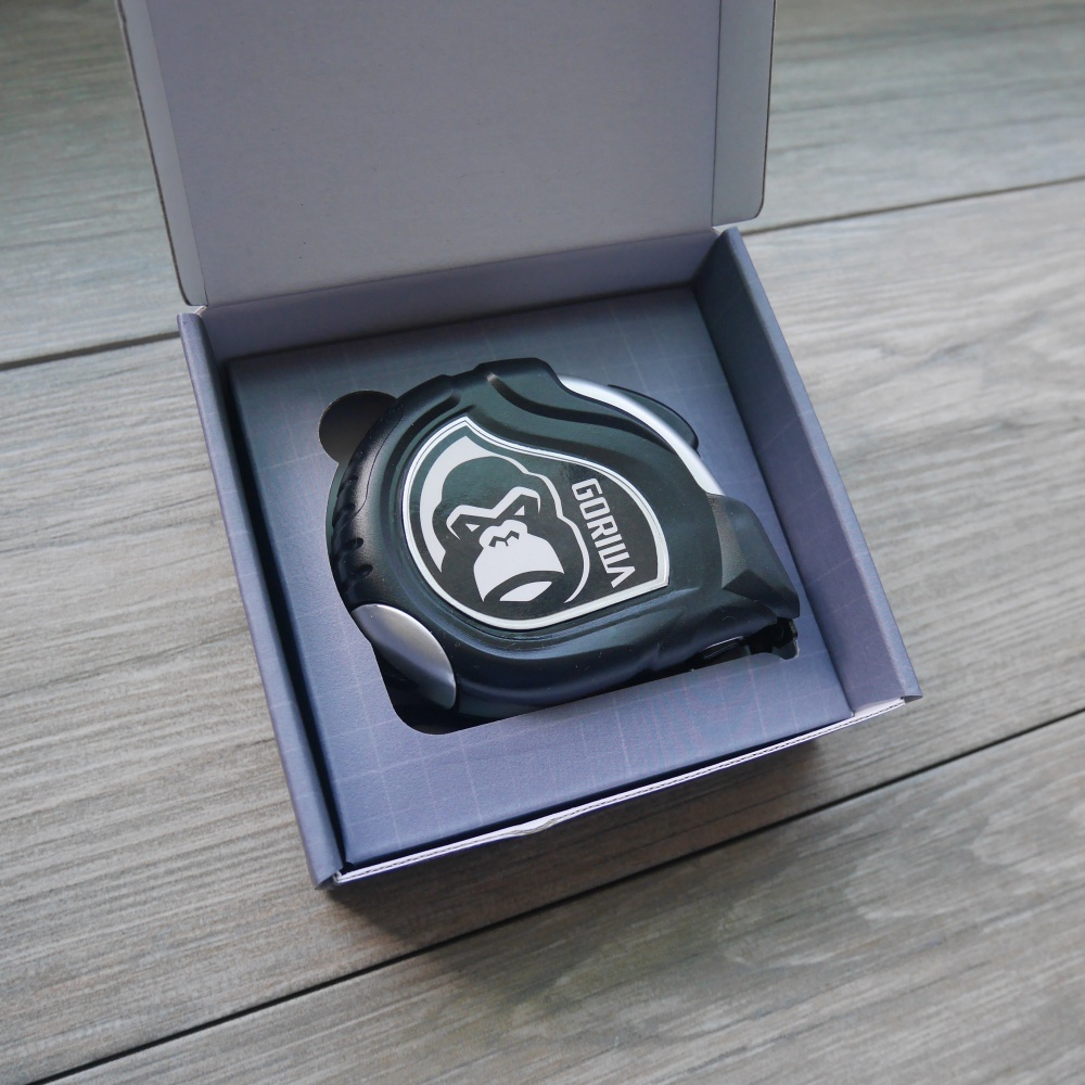 與廉價的捲尺採用工廠大批量生產的後具有些微精度不準的尺帶不同,Gorilla的捲尺每一顆都是工廠百分之百檢驗後的尺帶,並以日本JIS一級的標準進行製作(並無通過JIS一級認證,因為日本JIS並無認證文公尺尺帶且認證價格昂貴),加上Gorilla的特殊設計,讓每一條尺帶的挺立度及耐磨性更是提升到了最高,印上Gorilla標誌的尺帶就是品質的保證。