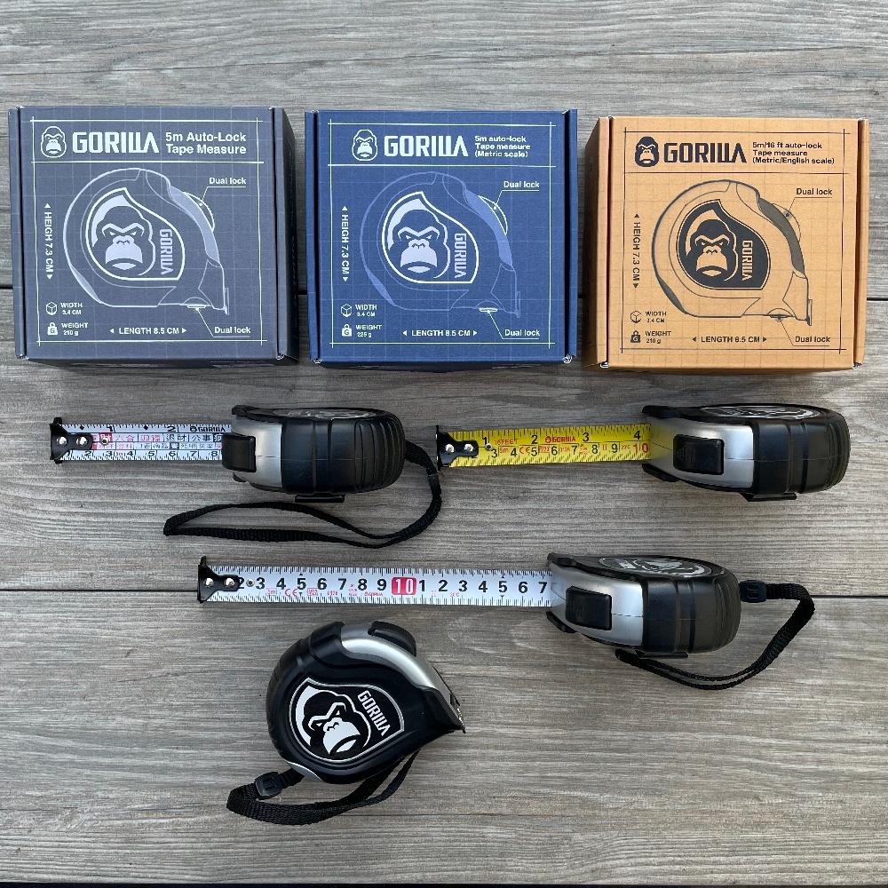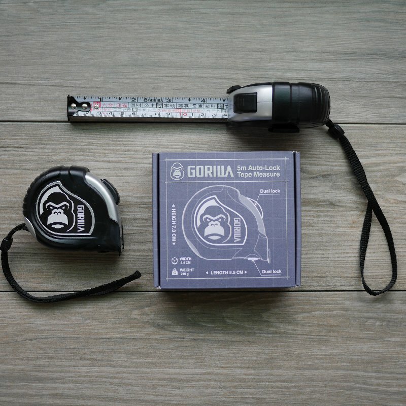 【Gorilla】雙面自動煞車5M銀灰捲尺 x1 (文公尺/公英制/全公分 3選1)